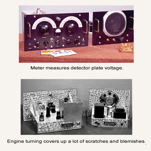 This was one of my early building efforts that turned out very well. For some reason I do not understand, this set has regeneration so smooth you have to hear it to believe it. Note transparent protractor scales used for tuning. To make the black letters stand out, the scales were backed with white paper. Set is now in the Joe Walsh collection.